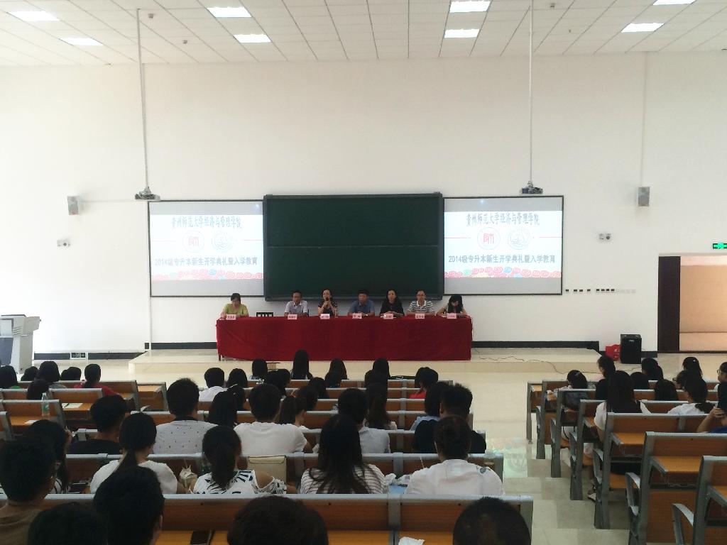 2016年8月22日上午,2014级专升本新生开学典礼暨入学教育在公司楼9315顺利举行。公司党委书记陈椽、经理吕萍、公司党委副书记项君、副经理杨馥榕、公司党委组织委员赵本喜及其他相关老师出席,全体2014级专升本新生参加,典礼由项君主持。