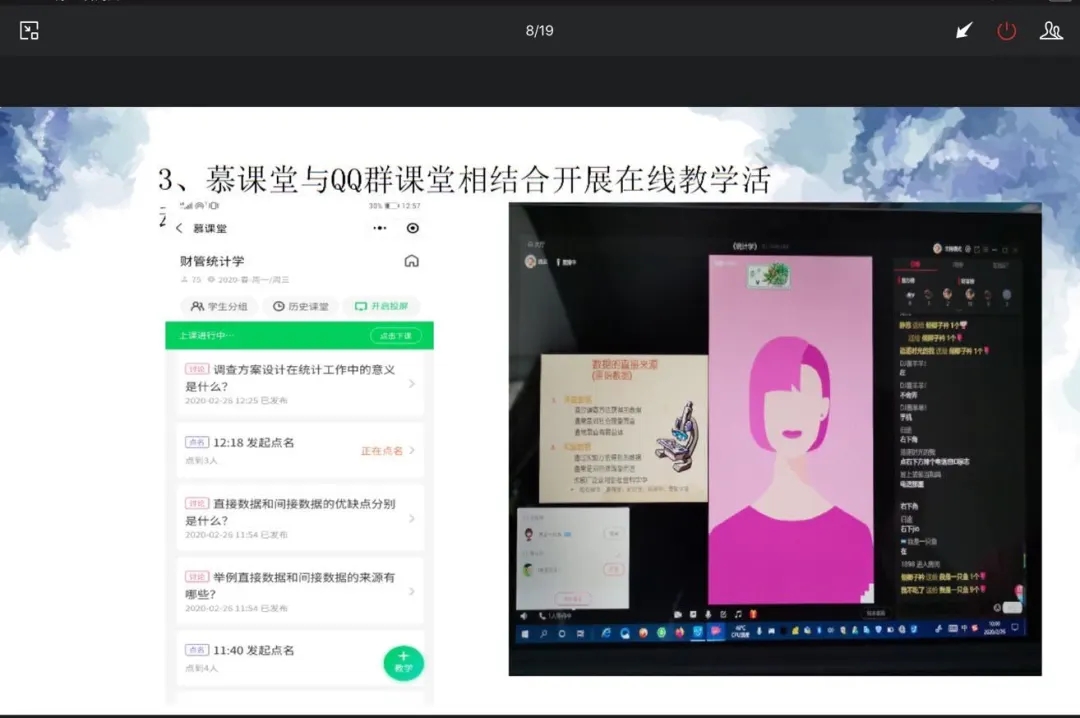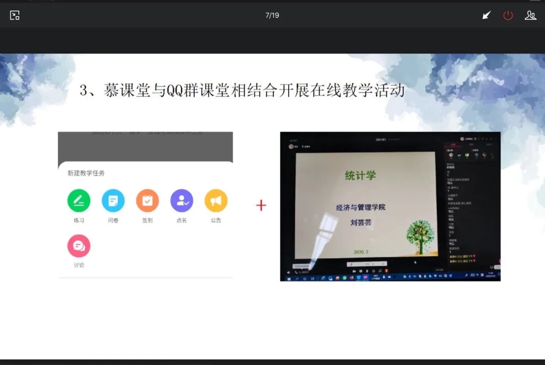 会上,老师们既分享了经验,也提出了困惑。如李孔俊老师、易静老师、康文峰老师利用假期提前构建课程资源,对在线课程的各个环节进行精心设计,采用互动式教学模式,引导员工积极思考;《市场营销学》课程团队的杨馥榕老师、《统计学》课程团队的刘芸芸老师分别通过文档演示详细地与大家分享了中国大学MOOC平台开课初体验和 “同步”+“异步”的混合式教学模式,使教学更加灵活实用;刘晓婧老师从教学质量监控方面对老师的在线教学工作提出了建议及要求。同时,老师们也提出了共同面临的困惑,诸如网络拥堵带来的平台卡顿、数据不同步、如何对员工听课进行有效的监控等等问题。与会老师各抒己见,达成一些共识,尝试在今后的教学中及时进行改进和优化。
