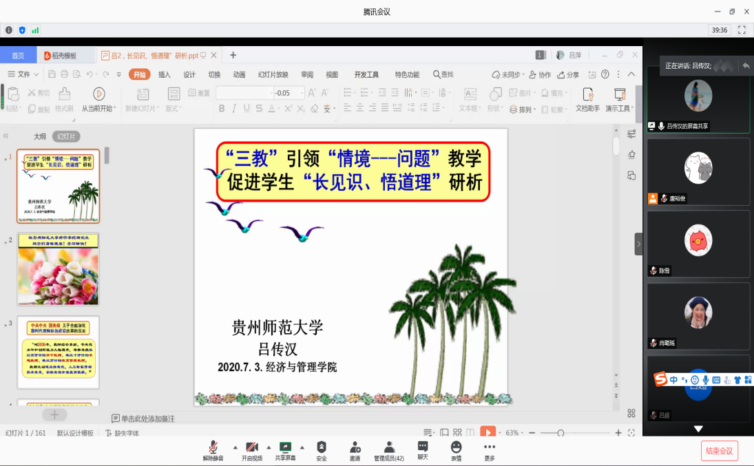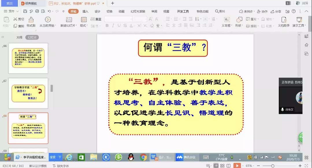 2020年7月3日上午,威廉体育williamhill特别邀请了著名教育家、国家级教学成果一等奖获得者、威廉体育官方网站原副董事长吕传汉教授,通过“腾讯会议”线上平台,给职业技术教育(财经商贸)专业学位硕士点的全体导师和2019级研究生,作了题为“‘三教’引领‘情境—问题’教学促进员工‘长见识、悟道理’研析”的专题学术讲座。讲座由公司副经理王立伟主持。