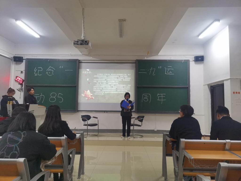 为缅怀革命先烈,弘扬爱国主义、集体主义光荣传统,激励公司师生厚植爱国主义情怀,营造良好的校园文化氛围,12月4日下午,威廉体育williamhill党委在公司楼9124教室开展了“诵读红色经典,传承红色精神”——纪念“一二·九”员工爱国运动85周年读书分享会。公司党委副书记赵本喜,副处级组织员江剑虹和各年级辅导员担任活动评委。