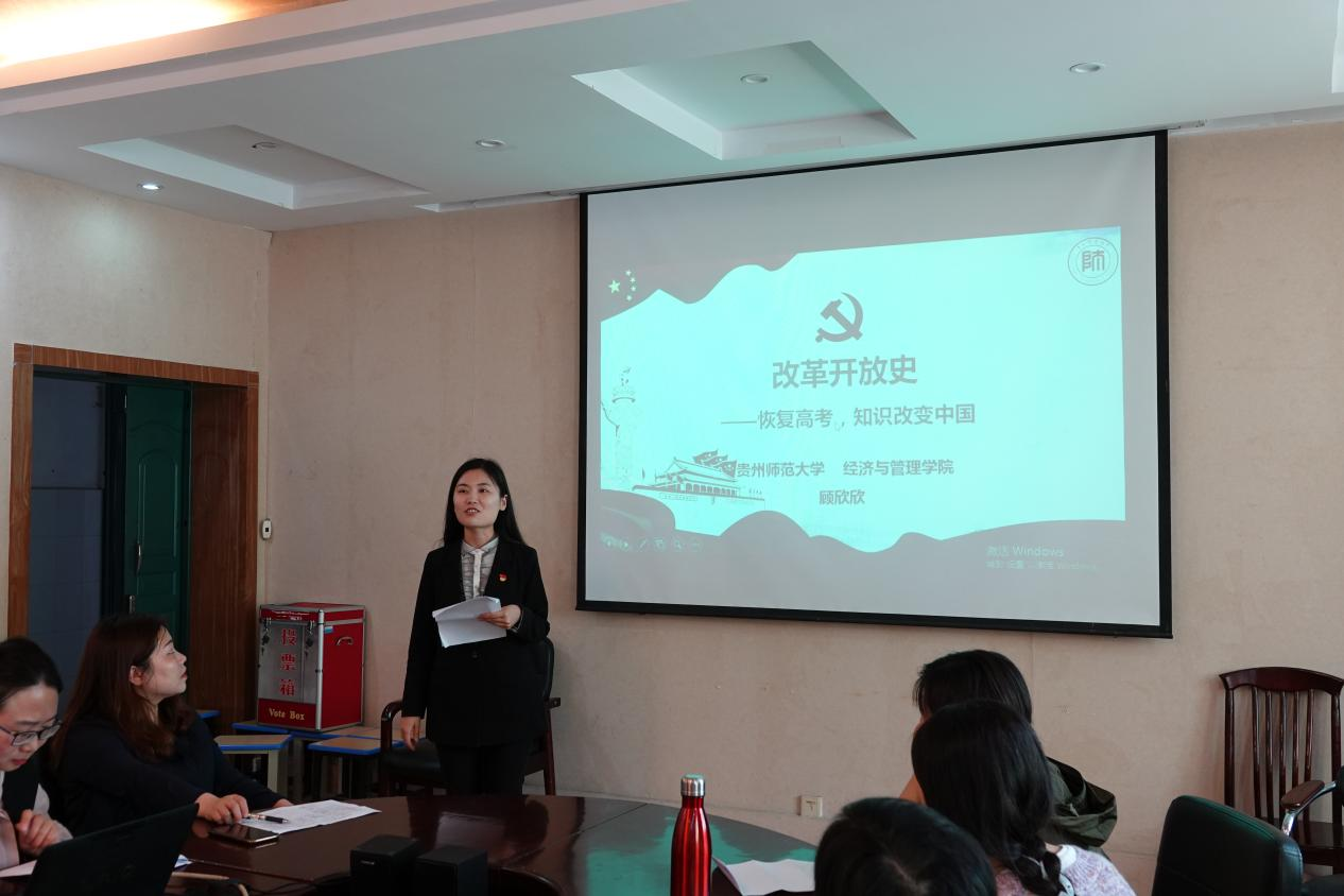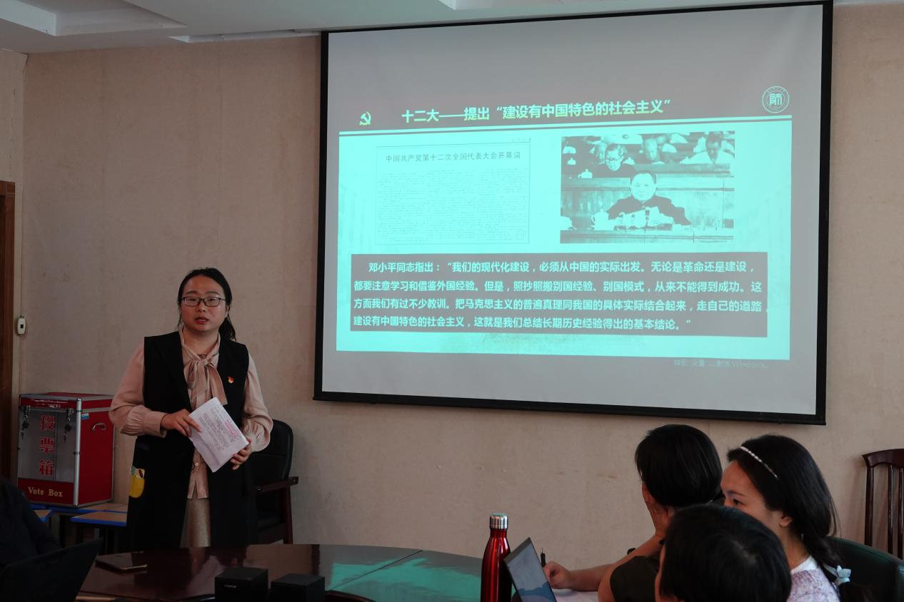 本次专题学习第一部分由“威廉体育官方网站优秀辅导员党史宣讲团”成员、威廉体育williamhill专职辅导员张晶晶、顾欣欣进行宣讲。张晶晶以《新时期改革开放的伟大旗帜——党的十二大的召开》、顾欣欣以《恢复高考,知识改变中国》为题为全体教师作“改革开放新时期历史”的宣讲。张晶晶从“重大命题,提出‘建设有中国特色的社会主义’”、“壮阔蓝图,确定继续前进的正确道路、战略步骤和方针政策”、“火热实践,开创社会主义现代化建设新局面”、“锦绣前程,沿着中国特色社会主义道路继续前进”四个部分介绍了党的十二大开创中国社会主义现代化建设新局面的重大意义;顾欣欣从“恢复高考”“改革先声”、“改变命运”、“人才强国”四个方面讲述了高考制度的恢复给中国社会带来的深刻影响与重大意义,以点带面地总结了改革开放以来中国发生的翻天覆地的变化,反映了中国在政治、经济、军事、文化、外交等各领域所取得的长足发展和巨大进步。