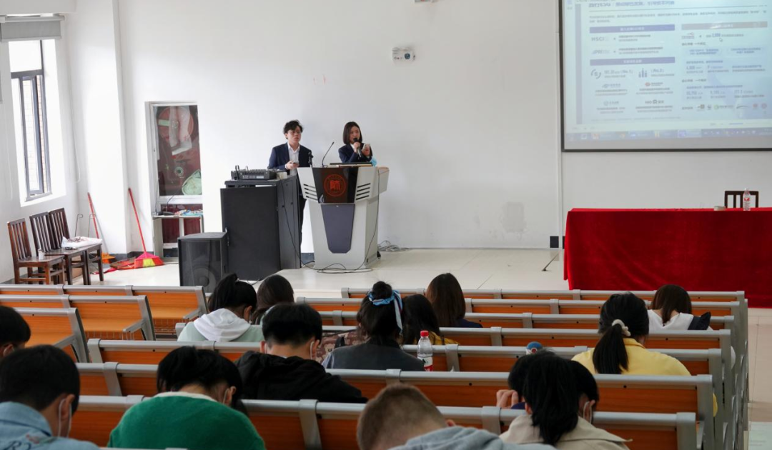 华泰证券公司王玲在讲座中邀请同学们积极投身到“心系投资者 携手共行动”中,努力学好金融证券专业知识,积极投身于证券行业。同时希望同学们能到华泰证券尽展才华,逐梦圆梦。