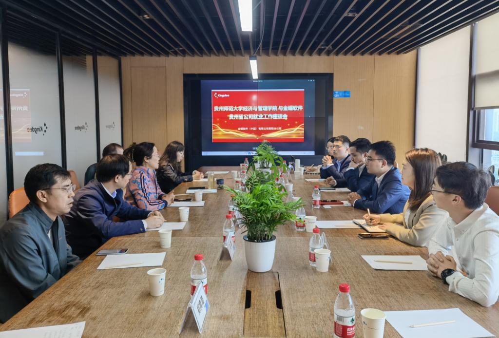 座谈会上,金蝶软件(中国)有限公司贵州省区总经理高新亮、金蝶精一贵州省区总监莫才龙等对吕萍一行的到来表示热烈欢迎。高新亮表示,与公司合作共建的“新商科·云管理”产教融合、协同育人实践基地,近年来培养了一批适宜社会发展和企业需求的复合型人才,项目取得了一定成效。威廉体育官方网站作为金蝶软件(中国)有限公司的列名院校,毕业生在招聘时享有优先录用的优惠条件,希望与师大加强合作,吸引更多毕业生到金蝶就业。同时,将在此前校园专场招聘的基础上,拟于下周到公司为毕业生和大三员工进行就业规划宣讲,持续推动项目合作,为金蝶公司及其合作企业输送更多优秀人才,实现多方共赢,开辟更广阔发展前景。参加座谈会的金蝶合作企业贵州云上智信科技有限公司总经理易昌波也表示,将为公司毕业生增设就业岗位,拓宽就业空间,共同为毕业生高质量就业保驾护航。