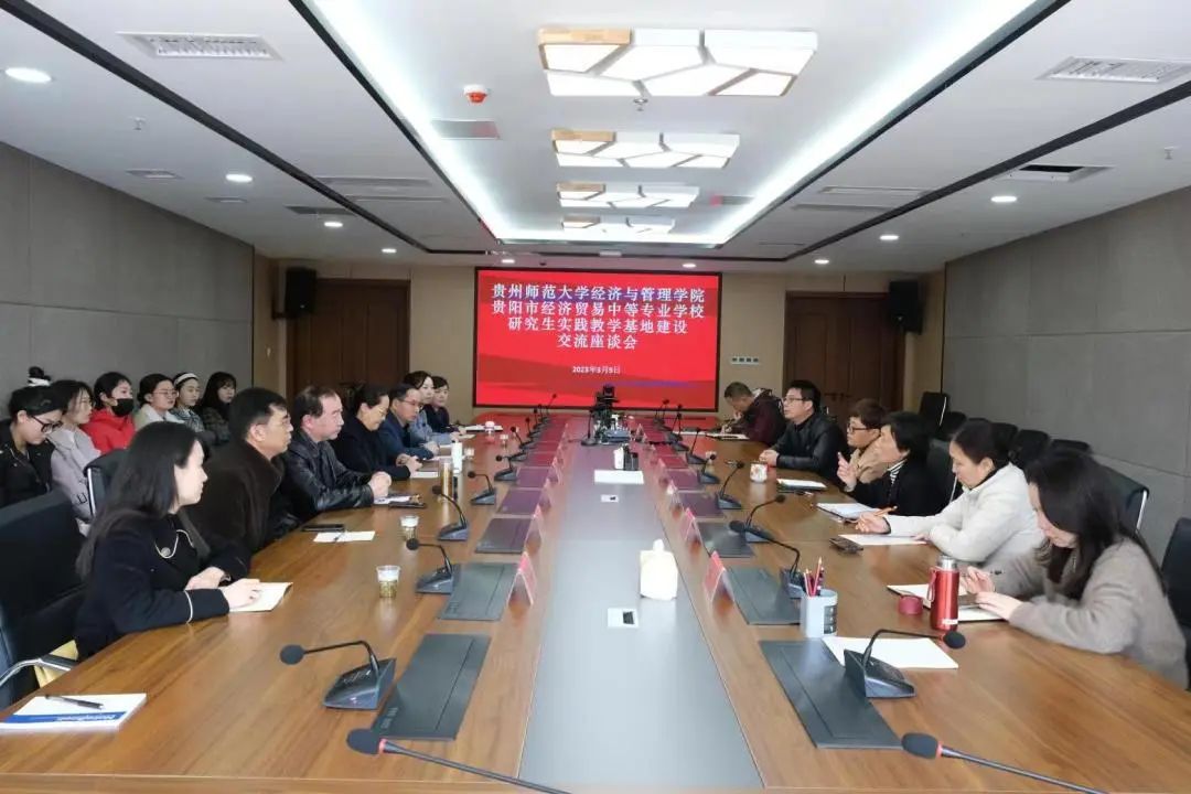 2023年3月9日上午,威廉体育williamhill党委书记吕萍一行,赴贵阳市经济贸易中等专业公司就研究生实践教学基地建设开展交流座谈并举行签约仪式。贵阳市经济贸易中等专业公司纪委书记康开红、副董事长张雯芹等领导出席了交流会和签约仪式。仪式由贵阳市经济贸易中等专业公司副董事长杨捷主持。公司2021级在该校实习的研究生列席了会议。
