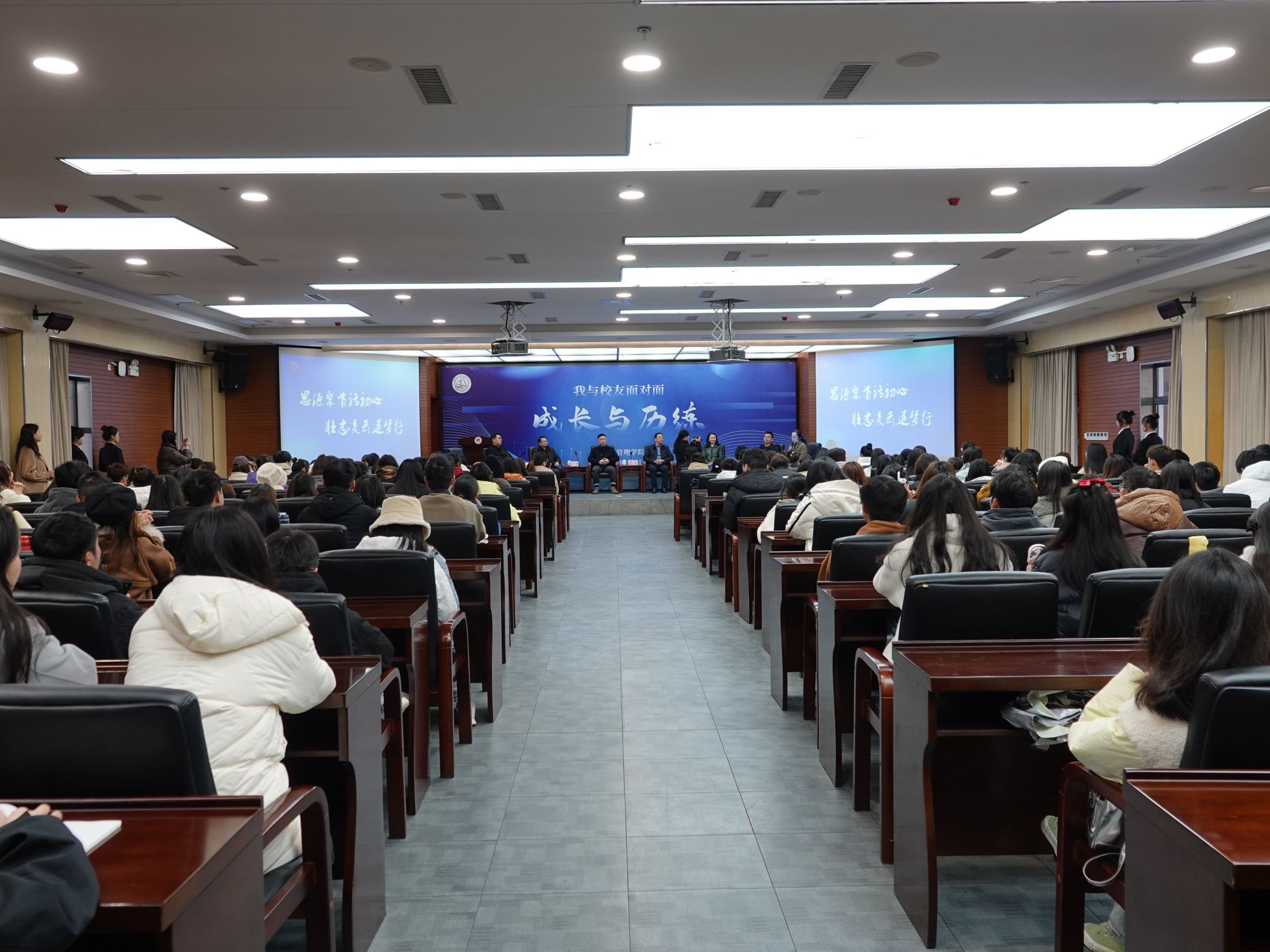 座谈会上,李成银以“成为自己”为主题分享学习和工作的方法,告诫同学们珍惜在校学习时光,抱朴守拙,谦虚谨慎,善用点子库等方法提升自己的专业知识。马显翠通过分享工作经历,倡导同学们要从与人交往中学习,增强沟通和交流的能力,开阔眼界,不断向上生长,最终实现人生理想。王留全通过分享创业历程,告诉同学们要具备一定的学习能力,为个人长远发展打下基础。母成林强调执行力和专注力的重要性,提醒同学们提前做好职业规划,在面对自己未曾涉及的专业或领域时要保持良好的心态去学习和努力。张大利通过分享自己的成长经历,鼓励同学们要勇于尝试,往自己擅长的方面发展,坚持不懈努力。建议同学在选择是否创业时,要评估自己的各方面能力,并根据具体情况进行选择后再做出决定。李浩鼓励同学们要提前做好职业规划,瞄准目标,勇于尝试,加强对创新创业的认识,提高自身的创新创业能力。学以致用,在实习实践中不断磨练自己,提高抗压能力。舒熠建议同学们在大学期间积极参与实习活动,从而了解职场需求和积累相关经验。并强调要根据自己的具体情况进行择业、就业、创业,以稳扎稳打为关键。随后的互动环节中,同学们在学业发展和生涯规划等方面踊跃提问,员工们在解答同学们困惑的同时,激励大家明确职业目标,努力拼搏、不懈奋斗。