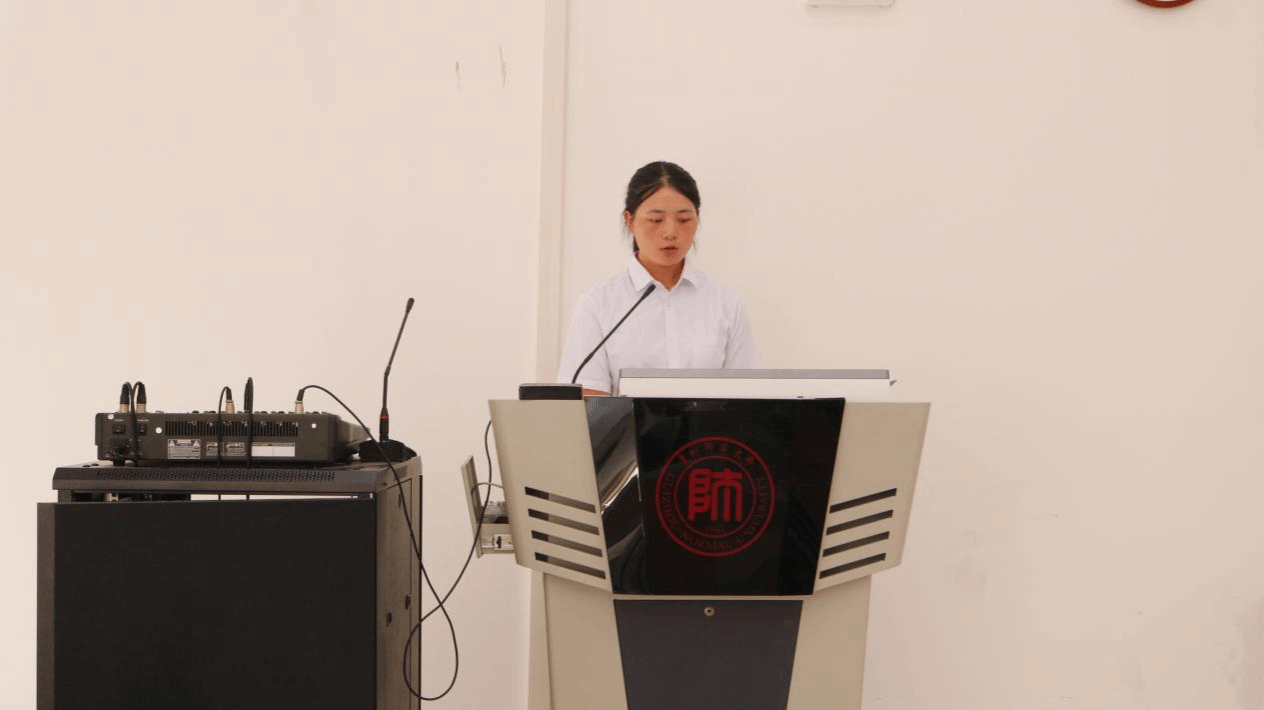 研究生新生代表2025级职业技术教育(财经商贸方向)李玉玲同学发言。她与同学们分享了研究生学习规划,强调要目标明确、笃行致远,博学多才、厚积薄发。