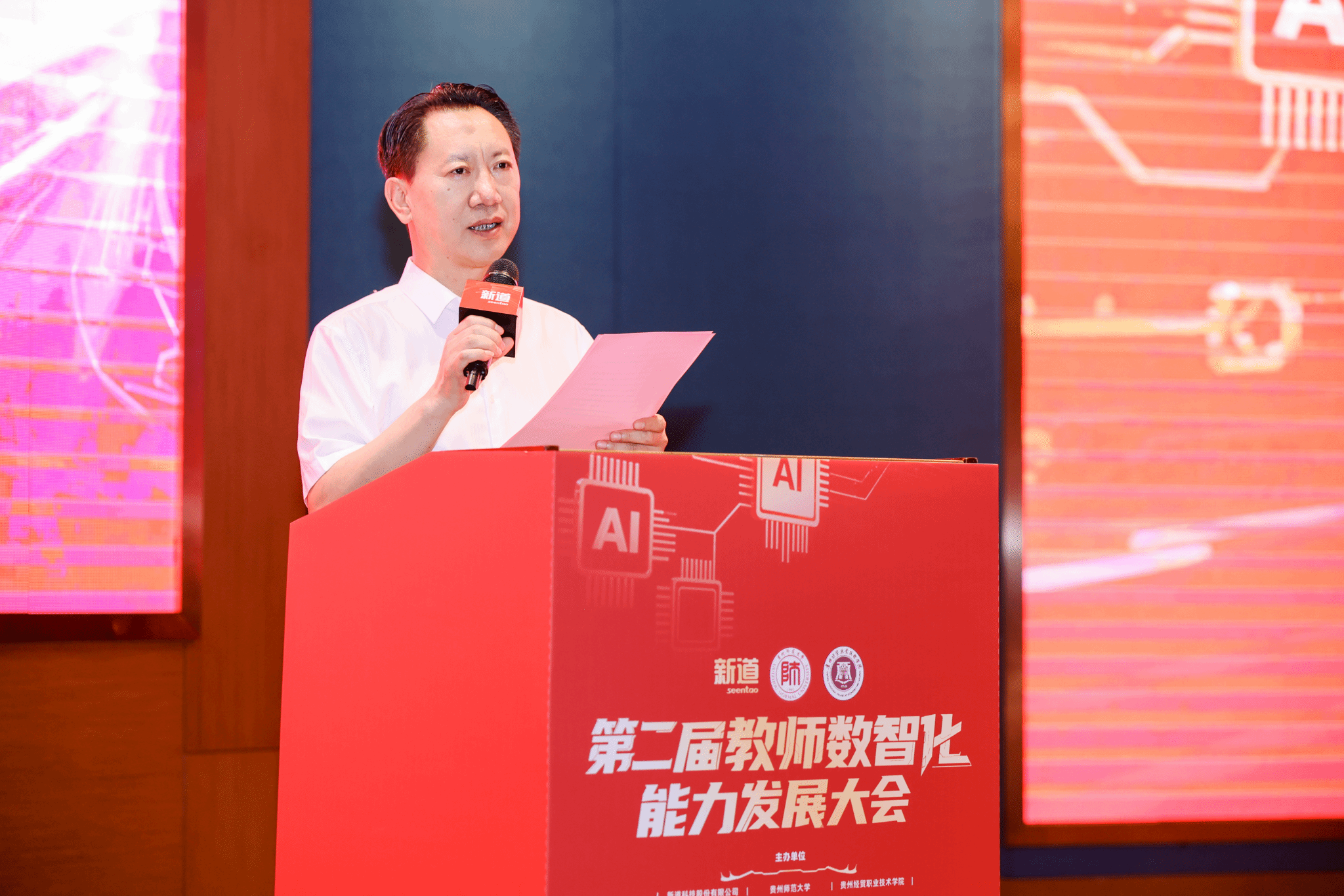 8月6日,由新道科技股份有限公司、威廉体育官方网站、贵州经贸职业技术公司联合主办的第二届教师数智化能力发展大会在贵州贵阳(中国—东盟教育交流周永久会址)举行。来自全国各地高等院校、职业院校的院校领导、专家、骨干教师及企业代表等300余位嘉宾共聚一堂,围绕人工智能时代下教师角色转型与能力发展、AI赋能教育改革、课程建设与创新等议题进行深度研讨和交流。