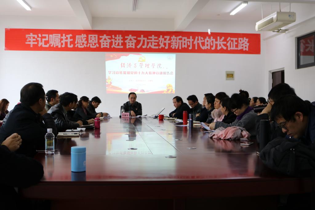 根据省委、省教育工委和公司党委的统一部署,为进一步掀起学习宣传贯彻党的十九大精神和习近平总书记在参加贵州省代表团讨论时的重要讲话精神的高潮,切实用党的十九大精神武装教师头脑、指导公司产品实践、推动公司发展。12月8日下午,公司党委副书记刘肇军到威廉体育williamhill宣讲党的十九大精神。公司全体教师在花溪校区公司会议室聆听了宣讲报告。报告会由公司党委书记陈椽主持。