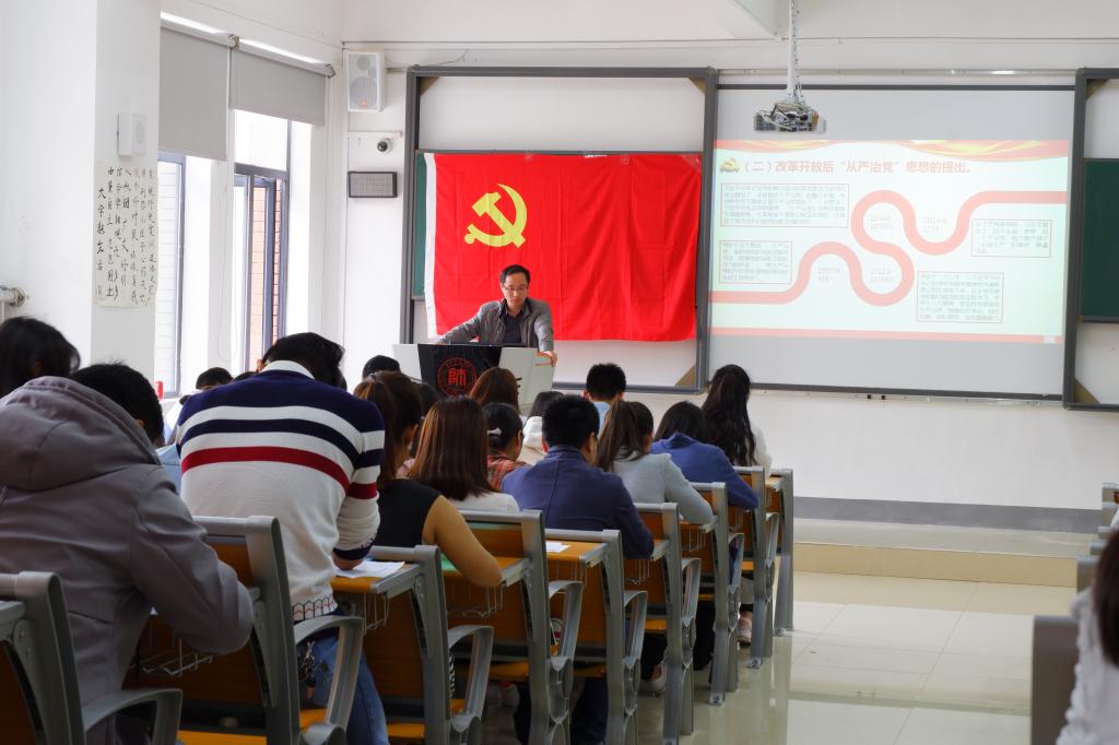 本次教育大会上,赵本喜为全体毕业生党员做了以“新时代全面从严治党”为主题的专题讲座。讲座从“全面从严治党”的发展脉络、“全面从严治党” 的必要性、“全面从严治党”的主要措施及成效以及“全面从严治党”的时代价值四个方面展开。整个讲座过程中既有详尽的理论介绍又有生动的案例分析,使同学进一步明晰了“全面从严治党”的重要意义。
