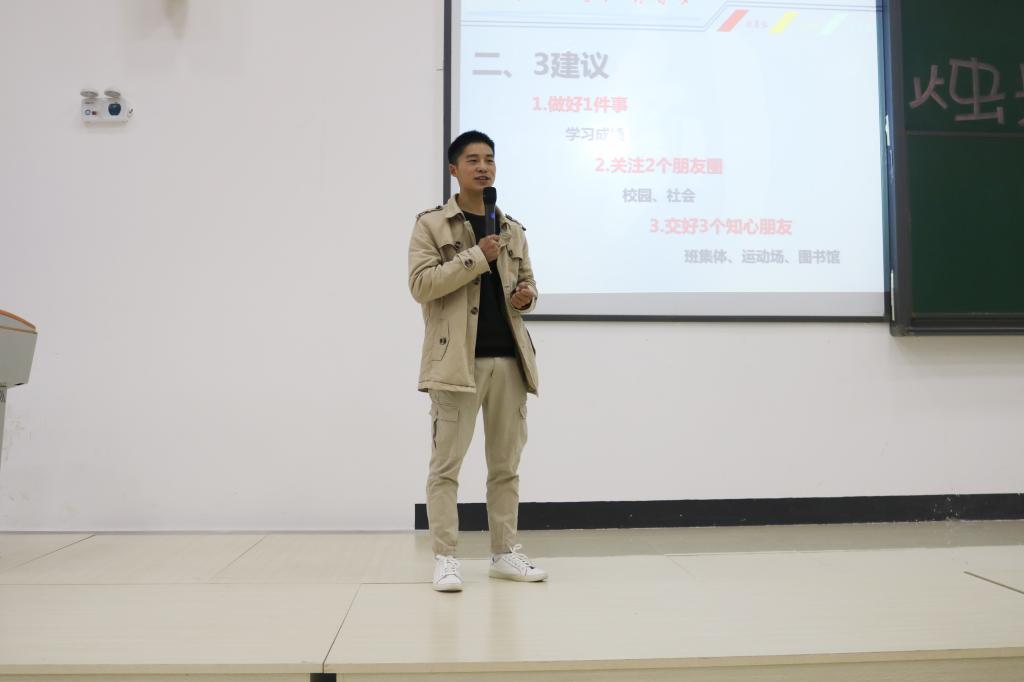 在交流互动环节,针对同学们提出的有关考研方面的问题,罗正敏为新生讲解了考研应避免的误区,并分享了自身的考研经验。何承洪则为同学们解答了有关参加创新创业类比赛和参军入伍方面的问题,并为部分同学送上了自己编写的《“三创赛”全国老员工学科竞赛指南》一书。