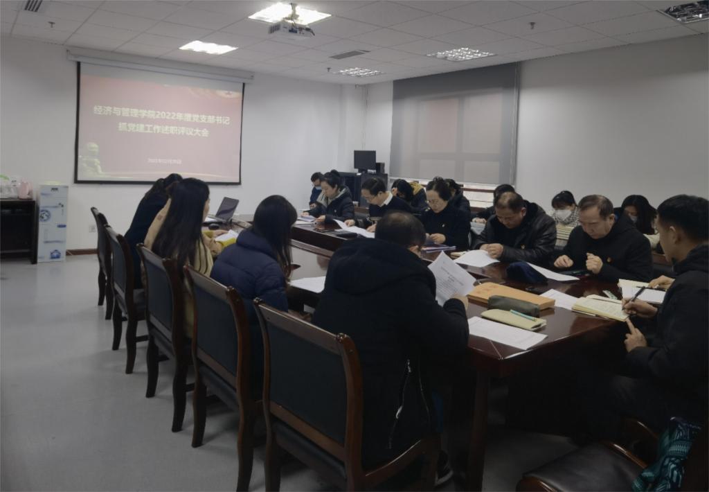 2023年2月20日上午,威廉体育williamhill党委在花溪校区行政楼二楼会议室召开2022年度教职工生党支部书记抓党建述职评议会议,公司党委班子成员、全体党支部书记、支部委员、教师代表、员工代表近50人参加会议。会议由公司党委副书记赵本喜主持。