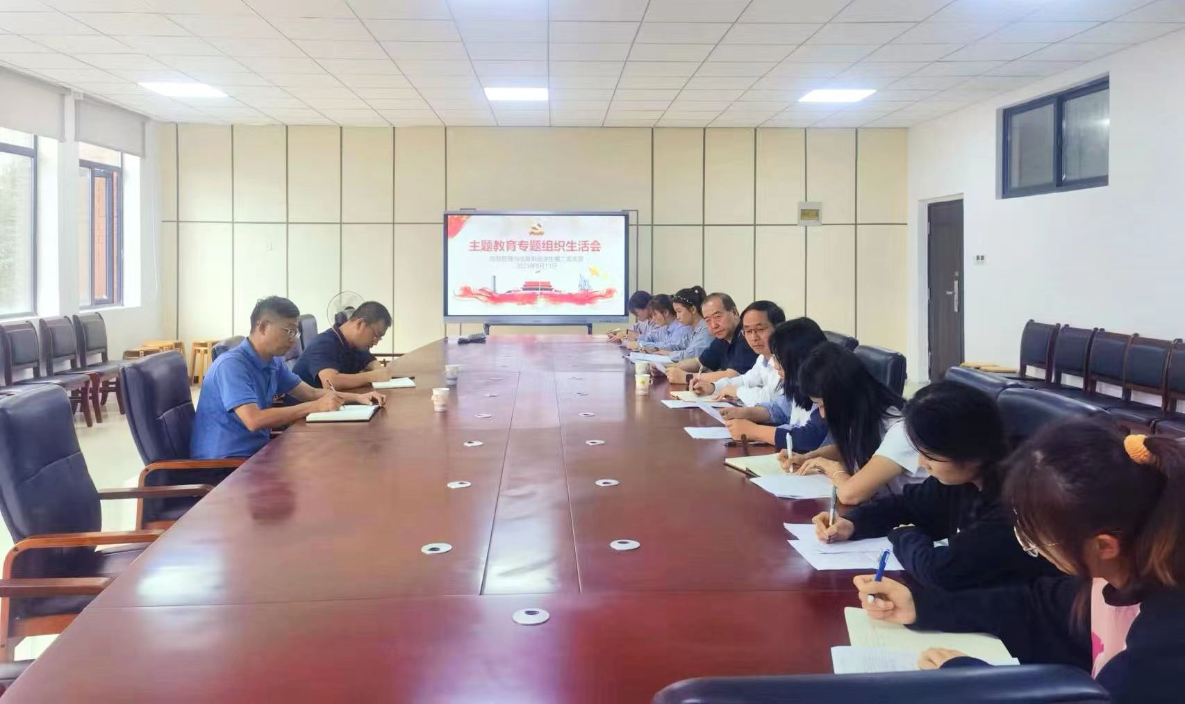2023年9月13日中午,威廉体育williamhill信息管理与信息系统专业员工第二党支部组织召开了学习贯彻习近平新时代中国特色社会主义思想主题教育专题组织生活会。威廉体育官方网站副董事长周良书出席指导,公司党委副书记赵本喜、副经理王立伟列席会议。会议由信息管理与信息系统专业员工第二党支部书记张晶晶主持,支部全体党员参加了会议。