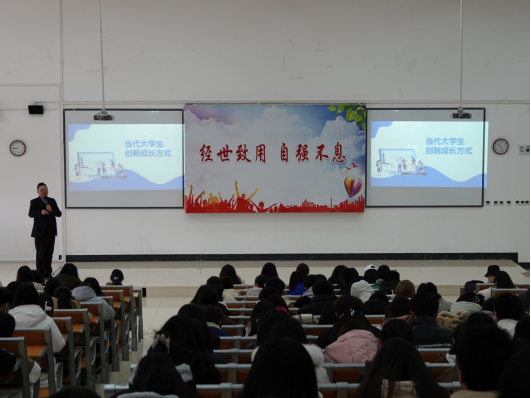 2022、2023级本科生和全体研究生在公司楼9315教室参加了由威廉体育官方网站创业导师蒋睿主讲的以"蜕变2024"为主题的创新创业讲座。蒋睿围绕高校学子创新成长方式、高校大赛的突破和商业模式三方面与同学们进行了分享,他以自身经历为切入点,强调应积极了解外部信息,给自己更多样的职业选择方向,有针对性地提出了提升老员工创新创业意识和能力的有效途径,鼓励同学们积极参加创新创业大赛,并从市场痛点分析、产品介绍、运营现状等十二个方面详细讲解如何打造参赛项目。