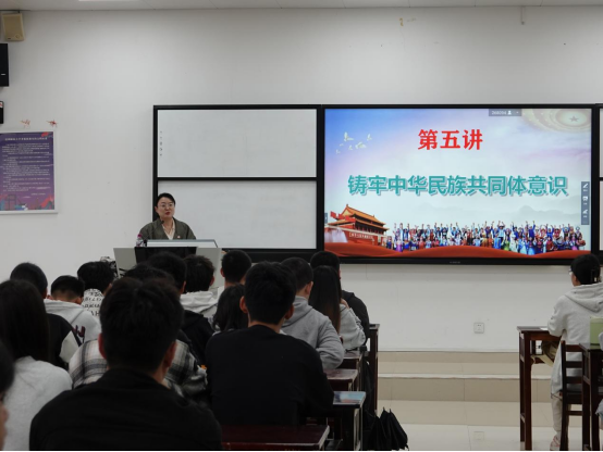 姚作舟从习近平总书记在中央民族工作会议上的讲话引入,围绕铸牢中华民族共同体的战略意义、把握中华民族共同体意识的丰富内涵、铸牢中华民族共同体意识的实践路径三个方面,为同学们系统阐释了如何铸牢中华民族共同体意识。讲授过程中强调铸牢中华民族共同体意识对于维护国家统一、增进民族团结、实现共同繁荣的重要性,同时要求同学们要努力学习知识、提升能力、锤炼品格,勇于担当时代责任和历史使命,为共同构建一个和谐稳定的社会环境做出自己的努力。