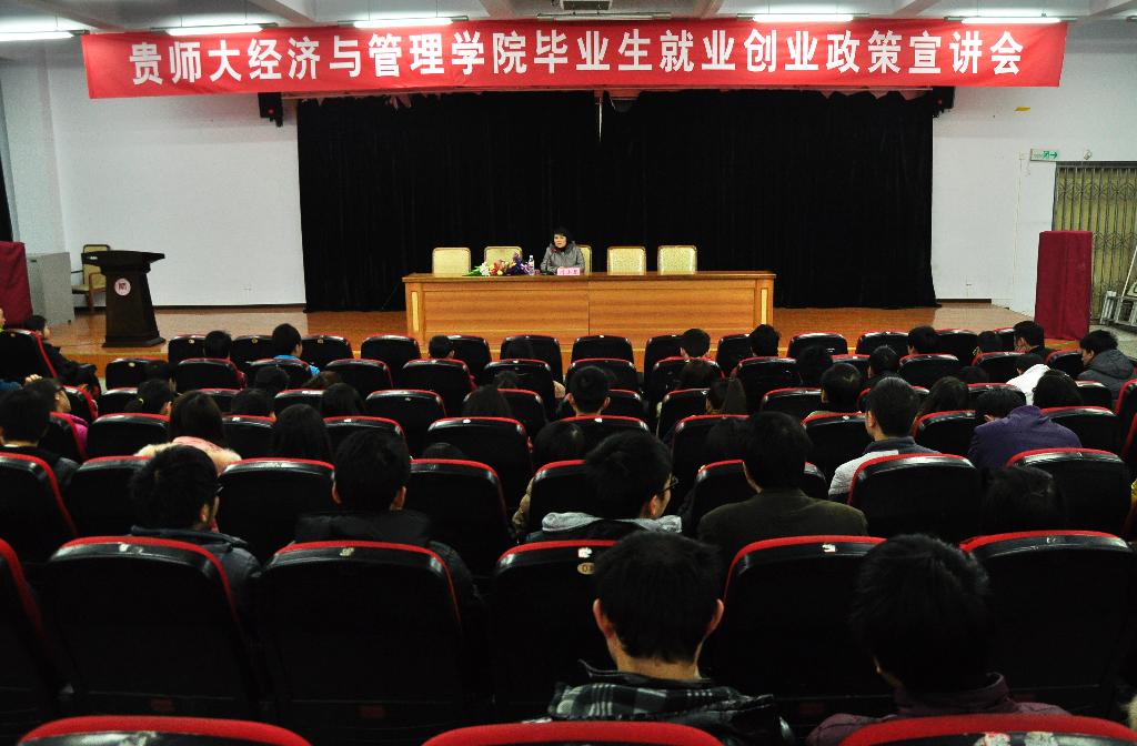 刘小琴主任从大学毕业生就业形势展开讲解,随后为毕业生们详细解读了包括“三支一扶”计划、老员工志愿服务西部计划、高校毕业生就业见习计划、一村一名老员工工程、选调生工作和选聘高校毕业生到村任职计划在内的相关政策,并从创业项目选定、工商登记优惠政策、创业税收优惠政策、小额贷款优惠政策等方面对自主创业相关政策进行了详细宣讲和说明。她鼓励毕业生自主创业。她说,创业是一个在实践中不断总结和完善的过程,而多数毕业生不敢创业,也不能创业,其实是大家把创业想得太困难的缘故。