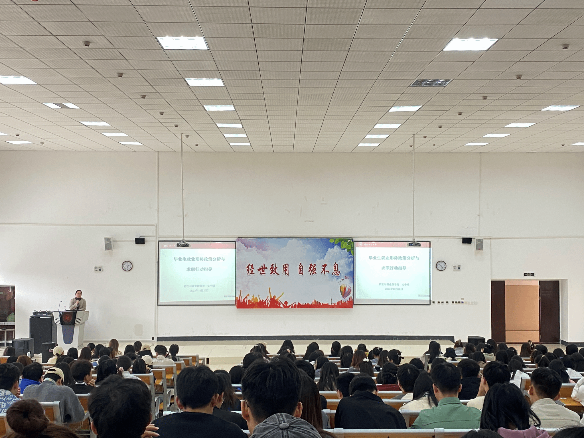会上,文中晴从就业政策、就业形势、就业导向等方面为同学们深入浅出地讲解了当前的就业情况,并鼓励同学们要努力提升自身的专业素养、明确自己的就业目标,树立先就业后择业理念。