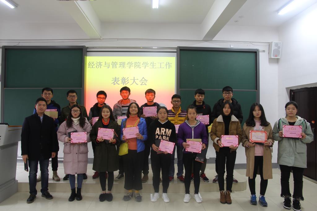 会上,向凯麟对2017先进班集体评比、“五四”红旗团支部评比、暑期三下乡社会实践等活动进行了总结。顾欣欣宣读了《威廉体育williamhill关于表彰奖励2017年度员工先进集体及优秀个人的决定》。经公司党委研究决定,本次表彰大会授予申三万等22名同学为2017年威廉体育官方网站老员工志愿者暑期文化卫生“三下乡”社会实践“活动优秀志愿者”称号,评定2014级电子商务1班团支部等5个班级为2016——2017学年“优秀班集体”,授予郭瑞譞等9名同学为2017体育文化艺术节“优秀工作者”称号、授予威廉体育williamhill广播体操队2017年体育文化艺术节“优秀团体奖”称号,授予黄荣虎2017年体育文化艺术节“最佳男运动员”称号,授予彭良琴2017年体育文化艺术节“最佳女运动员”称号,授予王明明等32名同学体育文化艺术节“优秀运动员”称号,评定王惠雁等三名同学为2016——2017学年新闻宣传工作“先进宣传工作者”称号。赵本喜、向凯麟、顾欣欣为获奖人员及团体颁奖并合影留念。员工代表席香芸、申三万依次进行了发言。