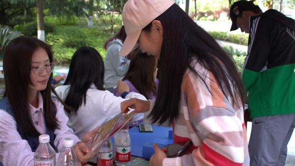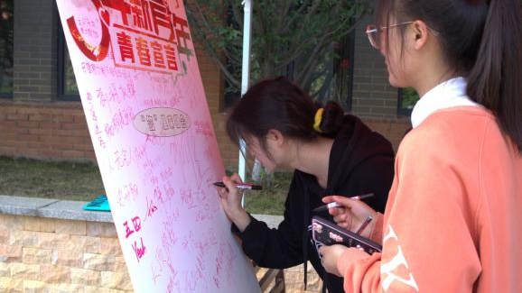 主题活动由“‘签’里来相会”、“心心相印,汇聚青春”、“‘喜迎二十大,争做新青年’答题”等三个活动板块组成,共计有100余名同学参与。“‘签’里来相会”由参与同学在展板上写下个性宣言并署名,从“青春正当时,奋斗新时代”到“长风破浪会有时”,书写青年独有的风采与活力。“心心相印,汇聚青春”让参与同学使用无污染颜料同绘一幅手印画,纷纷在展板上留下属于自己的印记,用最可爱的方式传承五四精神。在“‘喜迎二十大,争做新青年’答题”活动板块中,同学们在答题的紧张感中领悟五四精神,厚植爱国情怀。