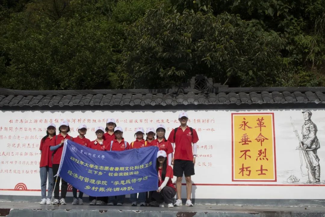 乡村振兴调研队深入清镇市新店镇探寻红色文化纪念址,感悟红二、六军团战士不怕艰难困苦,不怕流血牺牲,坚韧不拔、勇往直前的革命精神;拜访退役老兵、老党员,听取前辈的谆谆教诲,坚定理想信念,努力成长为堪当民族复兴重任的时代新人;采访鸭池河村党支部书记,了解鸭池河村红色旅游文化资源与助推当地经济发展的特色文化产业。