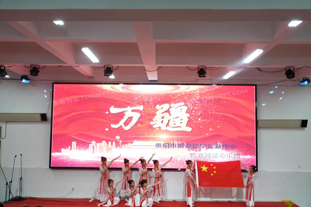 鸭池河“益童乐园”的孩子们身着汉服带来了歌颂祖国的古典舞《万疆》。