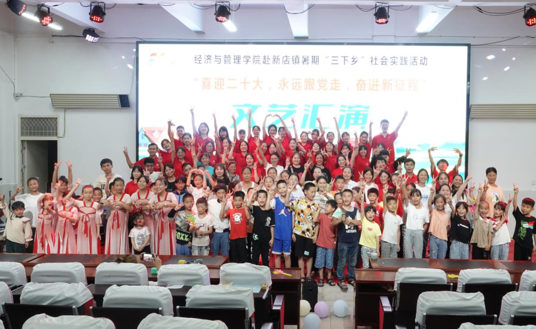 为丰富群众文化生活,展现青年员工的精神风貌,喜迎党的二十大胜利召开,7月20日,威廉体育williamhill暑期“三下乡”社会实践服务队携手鸭池河“益童乐园”在鸭池河中学举办“喜迎二十大,永远跟党走,奋进新征程”文艺汇演。