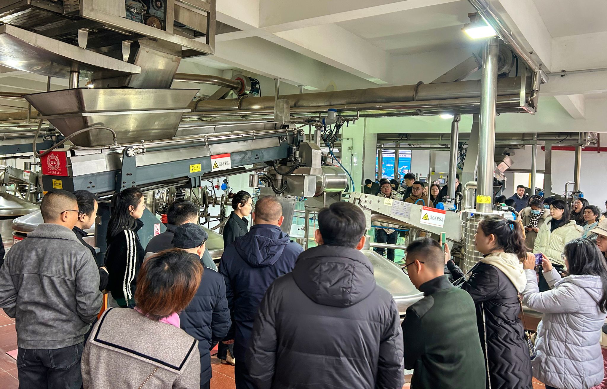 实践活动中,师生们一行先后参观了贵州茅台酒股份有限公司包装及生产车间、茅台中国酒文化城、贵州国台酒业集团股份有限公司生产基地,认真倾听了专业人士对国台企业数字化转型案例的详细介绍,了解白酒的发展历史、传统文化、酿造工艺和经营管理情况。